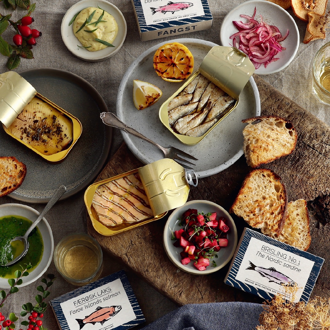 ハーブとホワイトペッパーで味付けされた、ノルウェー産のニシン。サラダやマスタードを添えて。