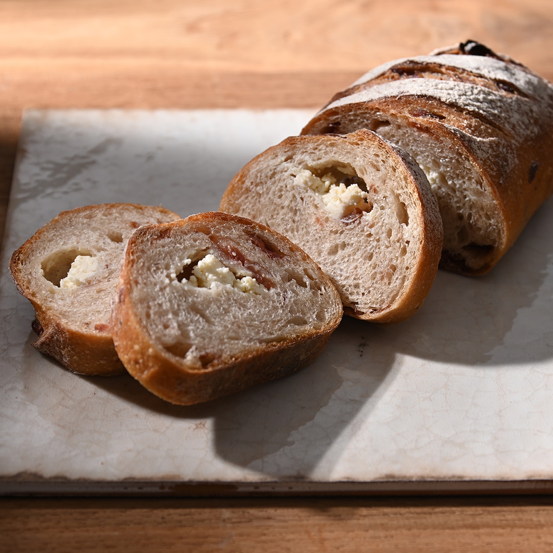 ライ麦入りの生地にクランベリーを混ぜ込み、クリームチーズを包んで焼き上げました。クランベリーのキュッとした酸味がアクセント。