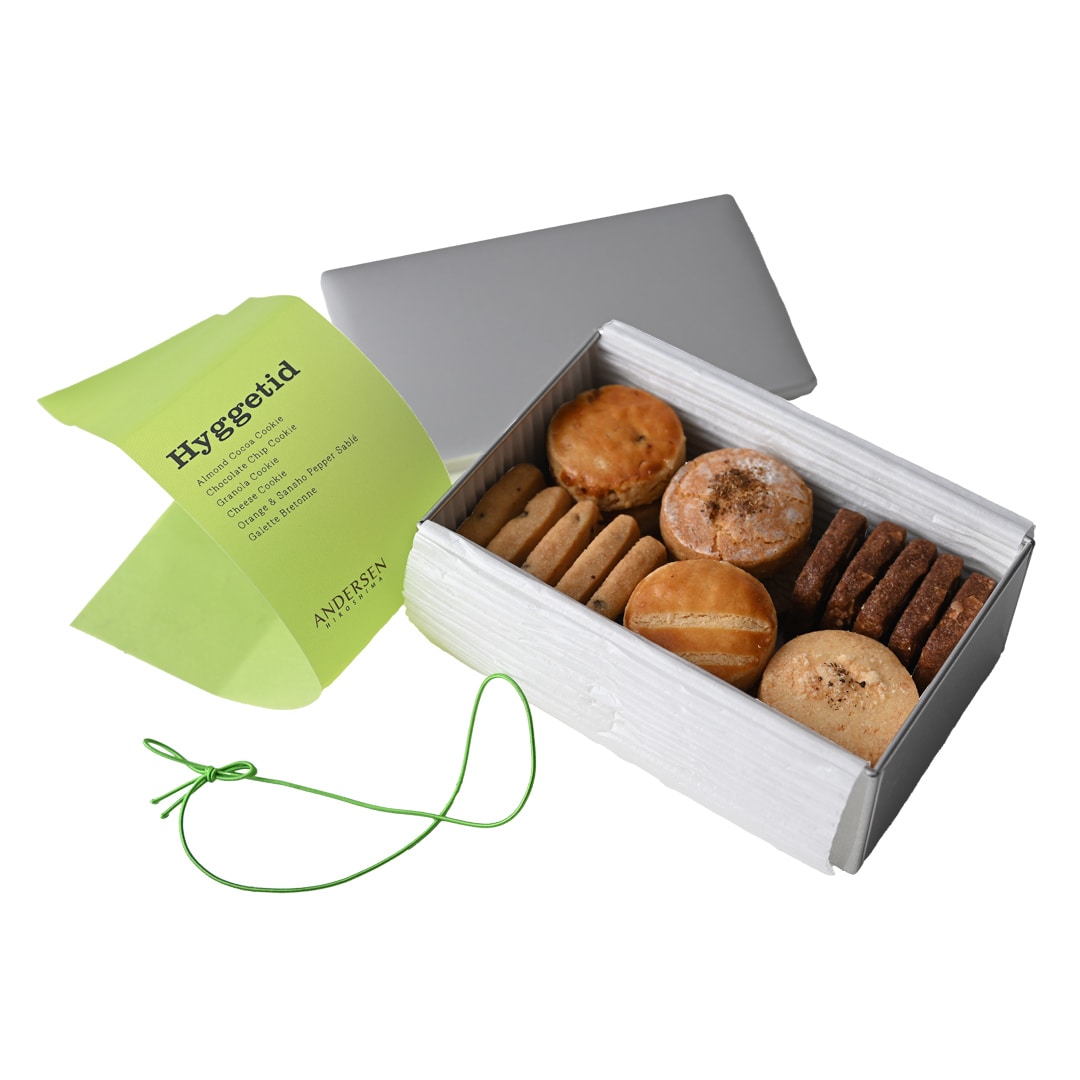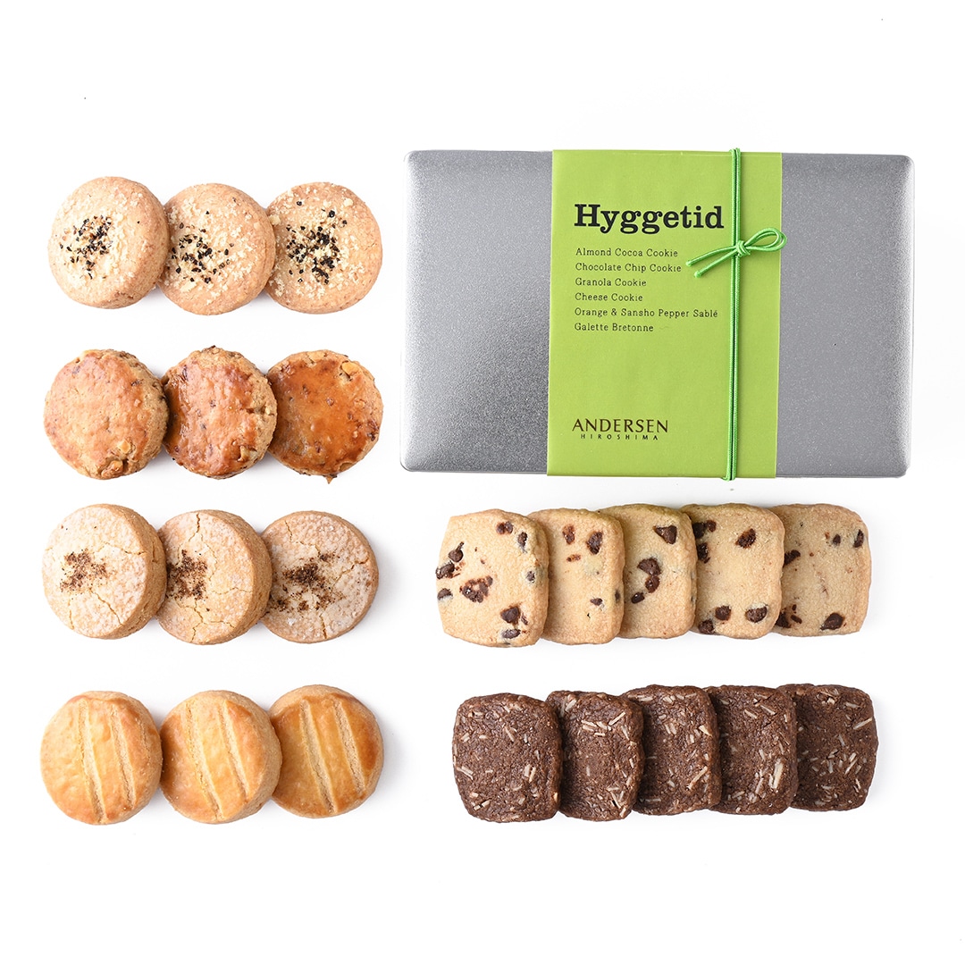 『ヒュッゲティド(Hyggetid)』とは、デンマーク語で『ヒュッゲなひととき』を意味する言葉。本店・広島アンデルセンのパティシエが、「大人のためのクッキー缶」をつくりました。個性豊かな6種類のクッキーで、どうぞ『ヒュッゲティド(Hyggetid)』をお過ごしください。