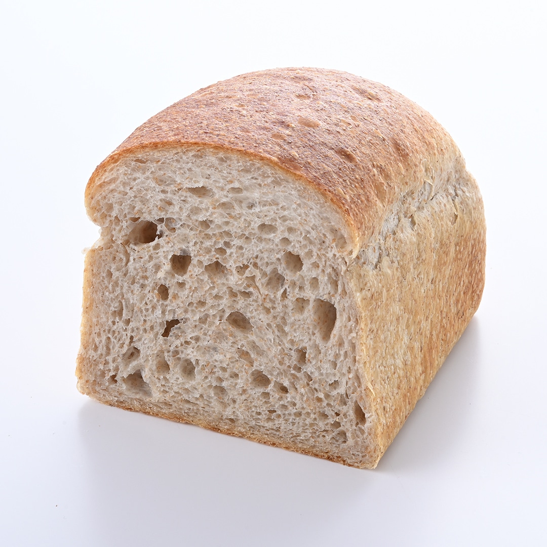 国産の小麦全粒粉入りのしっとりとした食感。トーストして、小麦の香ばしさをお楽しみください。