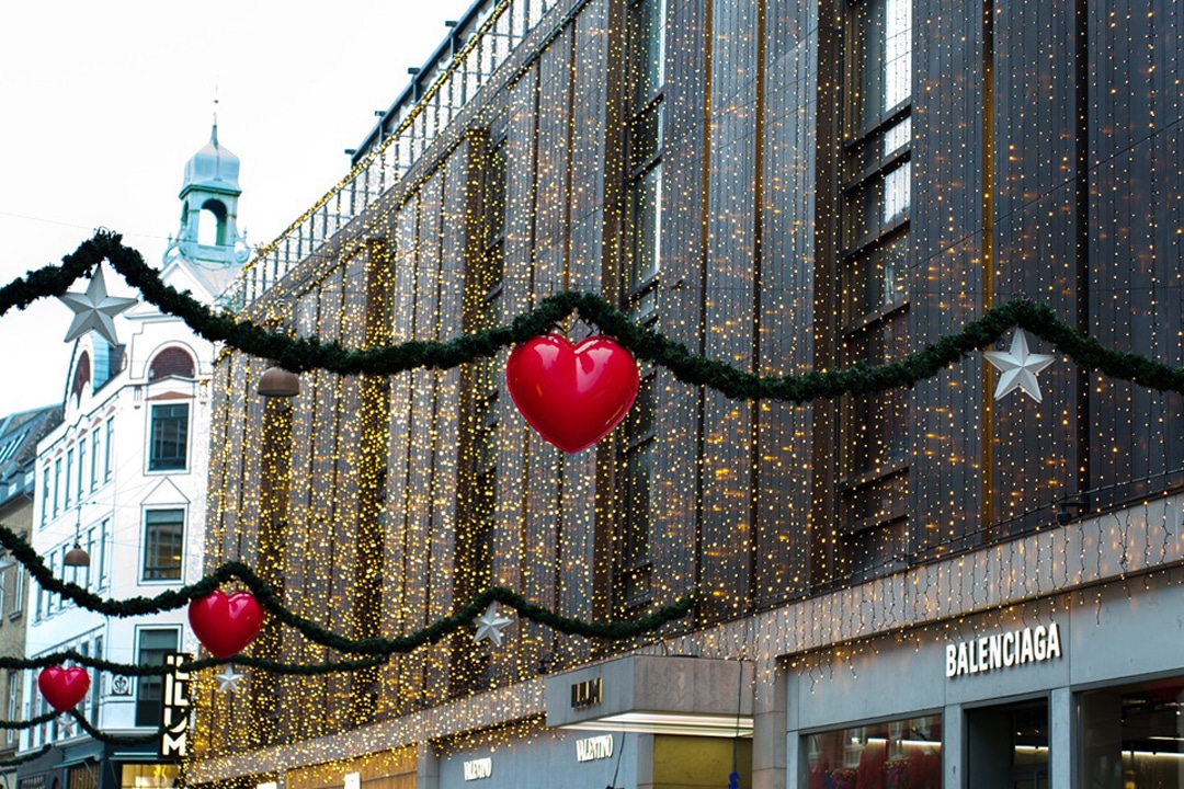 ストロイエを歩いていたら、どこを見てもクリスマスデコレーションで輝いているんだ。