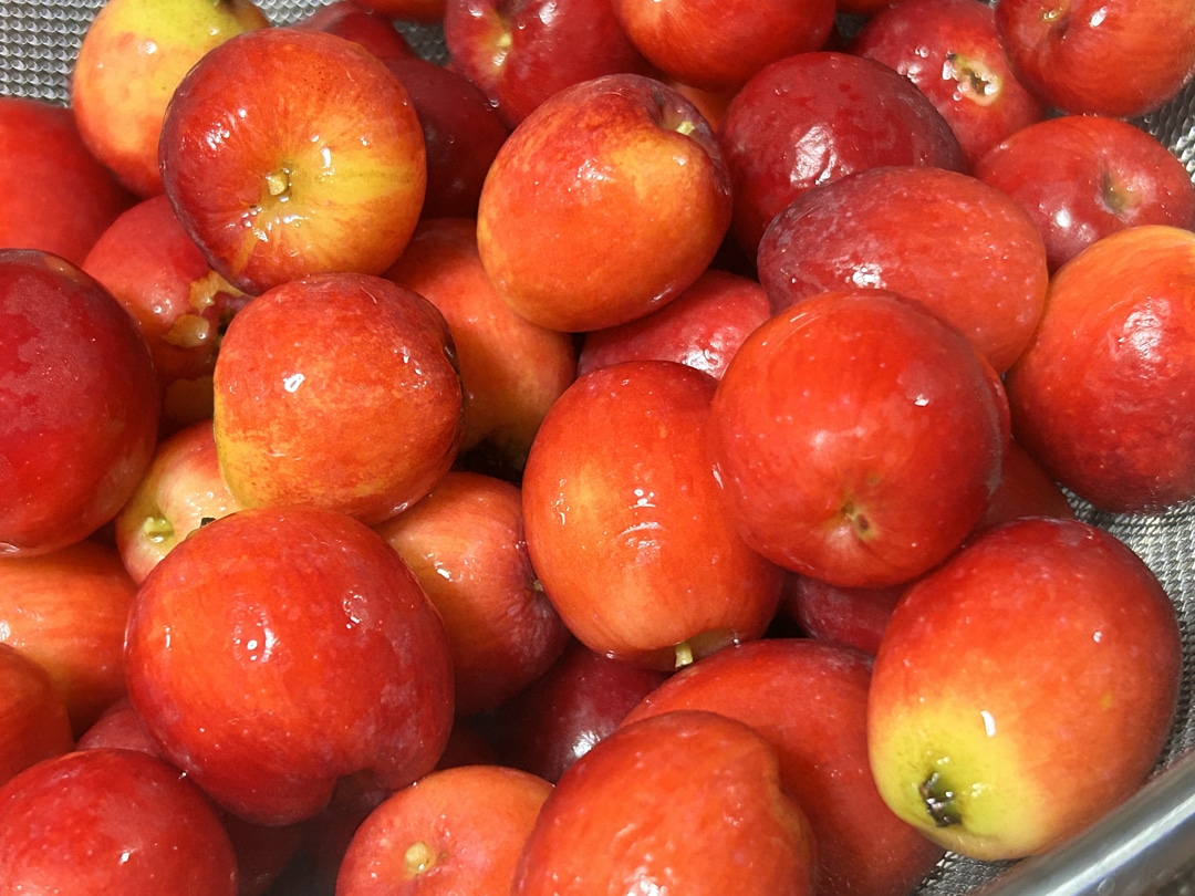 そしてファームでは、3品種・約5,000本のりんごの受粉を助けるために、小さな姫りんごのドルゴクラブ(クラブアップルの一種)も育てています。春に白い花、夏に赤い実をつけ、ミツバチが花粉を運ぶことで受粉を支える大切な存在。香りと甘酸っぱさが感じられる品種で、りんごづくりを陰で支える頼もしい仲間です。