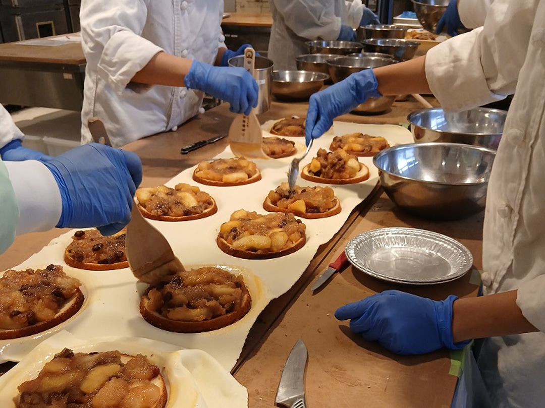 11月1日には毎年恒例の収穫祭を開催し、アンデルセングループの従業員やOB、関係者からなるファミリー会員とその家族約60名が来園。日頃よりファームの活動を支えてくださる皆さまと、収穫の喜びを分かち合う一日となりました。収穫を終えたりんごは、生食用としてアンデルセングループの一部店舗やアンデルセンのオンラインショップでの販売、会員向け宅配へ。1個ずつ専用のタオルで丁寧に拭き、色や形を確かめて箱詰めをします。加工用は自社工場でのプレザーブ加工に合わせ、毎週洗浄・運搬。パンや焼菓子、ジャムへと姿を変えていきます。