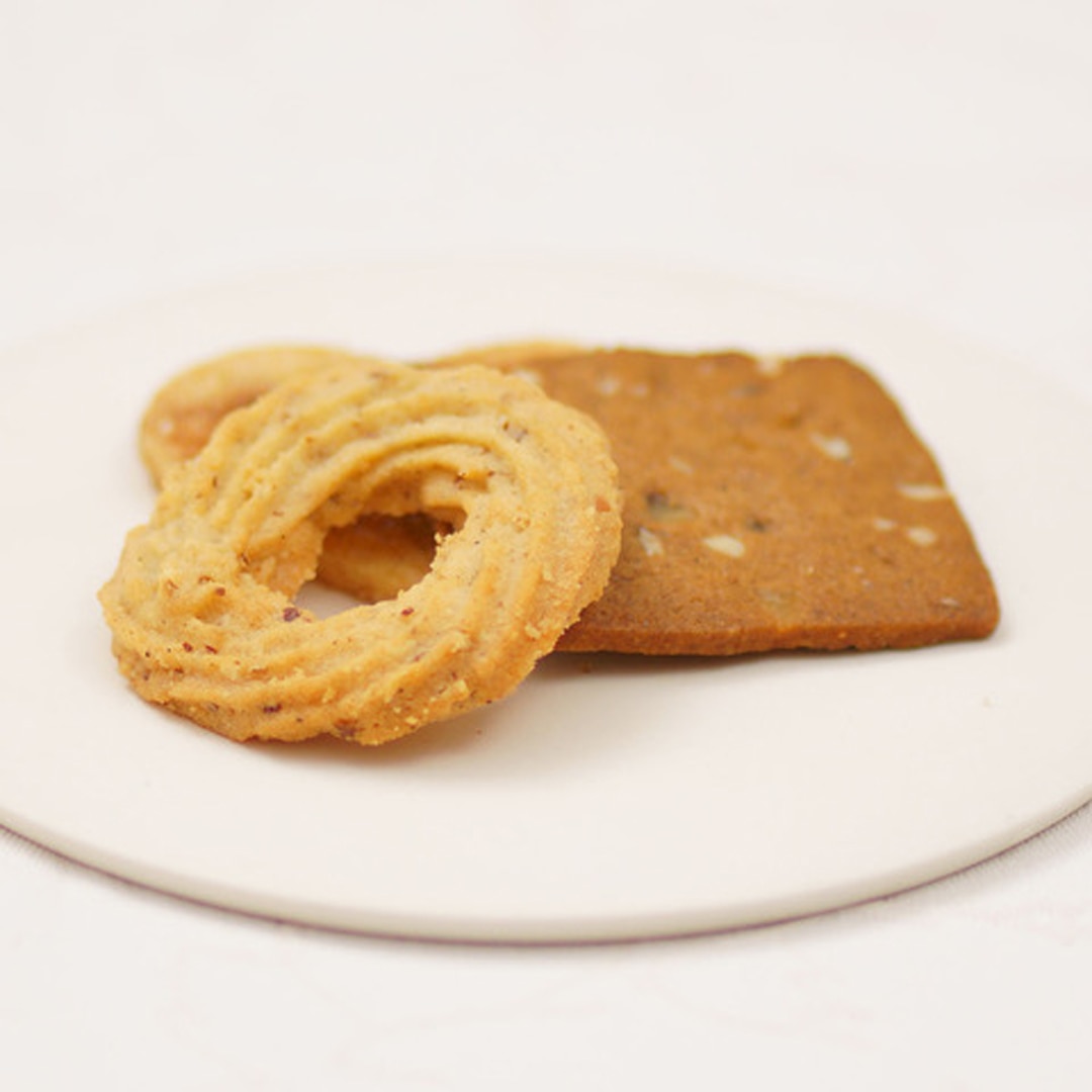 バニラ風味のリースクッキーとスパイスクッキー(1枚目)一口クッキー「胡椒粒」(2枚目)