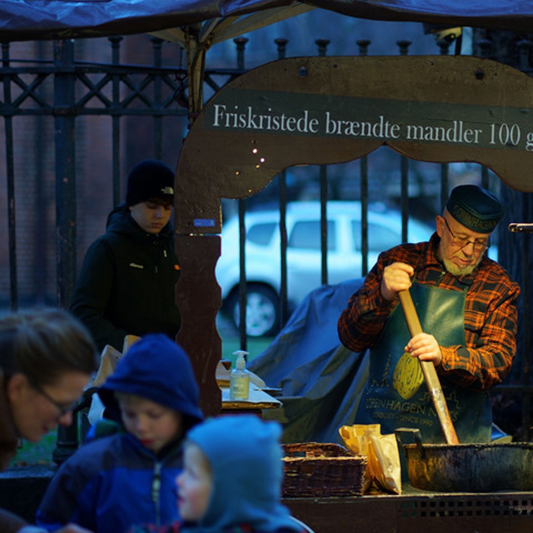 11月に入ると街並みもクリスマス仕様になります。夕方は4時前後には暗くなるので、夕方以降、建物に飾られた灯りはひときわ美しく感じられます。ベーカリーやケーキ屋さんにはクリスマスクッキーが並び、お店のレジには「胡椒粒」と呼ばれる一口サイズのまんまるクッキーを入れたボウルが置かれます。また、街頭やカフェでは「グルッグ」と呼ばれるスパイス風味のホットワインや、たこ焼きより少し大きいまんまるワッフル「エーブルスキーバ」がお目見えします。街頭で売られるアーモンドの砂糖がけもスパイス入り。湿った気候になりがちな11月には、スパイスの香りがあちこちで漂います。
