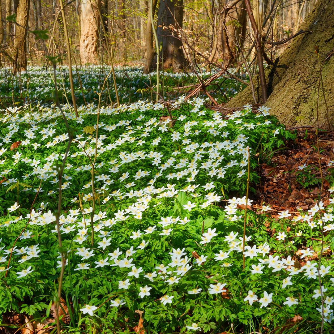 デンマークの4月は、ダウンコートが手放せない寒さが残る一方で、春らしい装いを楽しめる穏やかな日にも恵まれます。水仙やチューリップといった球根花が街や庭を彩り、森では新芽をつけたぶなの古木の根元にイチリンソウが一斉に咲き始めます。長い冬を越えた自然が、一気に目覚める季節です。
