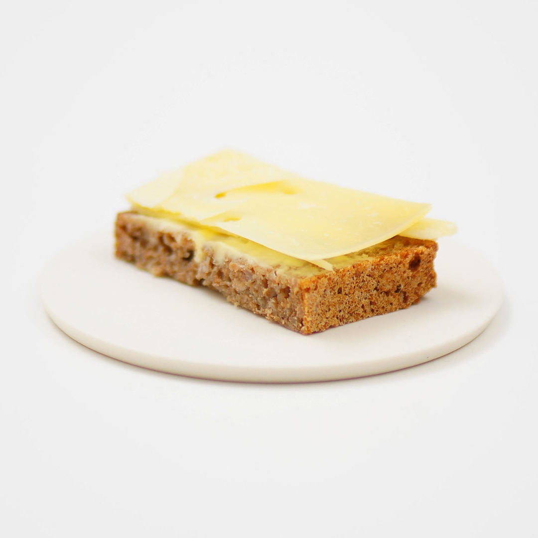 デンマークのライ麦パン「ロブロ」に発酵バターをぬり、薄くスライスした上質なチーズをのせたシンプルな一品は「チーズごはん」として広く親しまれています。日常の食卓に根付いたこうした乳製品も、放牧という営みと深く結びついています。